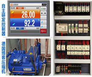 壓縮機采用德國博客或德國比澤爾,自主研發控制器可遠程操控、故障畫面顯示,多重保護裝制;